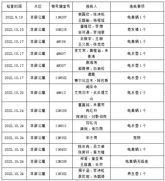 13间寝室有违禁电器情况,根据《404吧