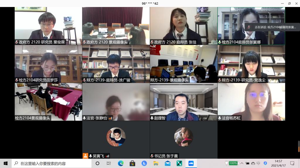于去年12月就启动了赛事的选拔和筹备工作。高强度的赛事备战和高难度的竞争挑战,让参赛的我校学子收获满满。参赛队员克服学业重、语言难等障碍,进行高效团结的“云备赛”。从线上会议论坛到观点学术研讨,从思路框架构建到文书写作修改,在教练和指导老师的指导下,参赛同学合理制定竞赛计划和分工合作,有条不紊的进行赛前准备,专心投入比赛。从2020年12月试题公布到今年4月17日、18日庭辩赛,4个多月的时间,队员们对案件和相关材料进行认真细致分析,牺牲课余时间和假期查阅大量中英文文献资料,有步骤地学习国际刑法知识,分析国际刑事法院和特别法庭的现实案例,多次修改、打磨和完善文书内容。