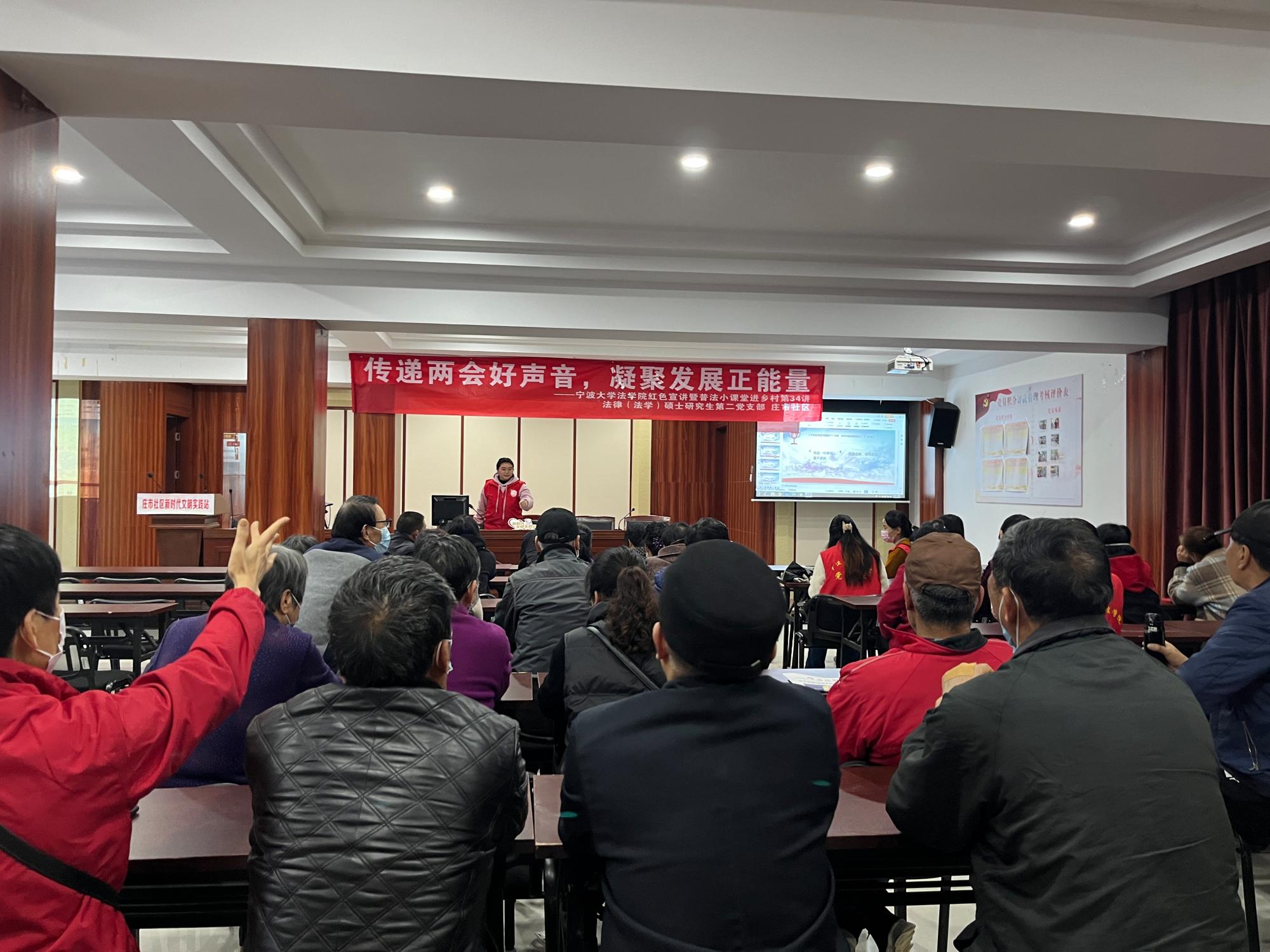 法律(法学)硕士研究生第二党支部前往庄市社区共同开展了“传递两会好声音,凝聚发展正能量”主题党日活动,在聚焦两会的同时,关注民生问题,让党员同志们从活动中汲取知识,凝聚正能量。
