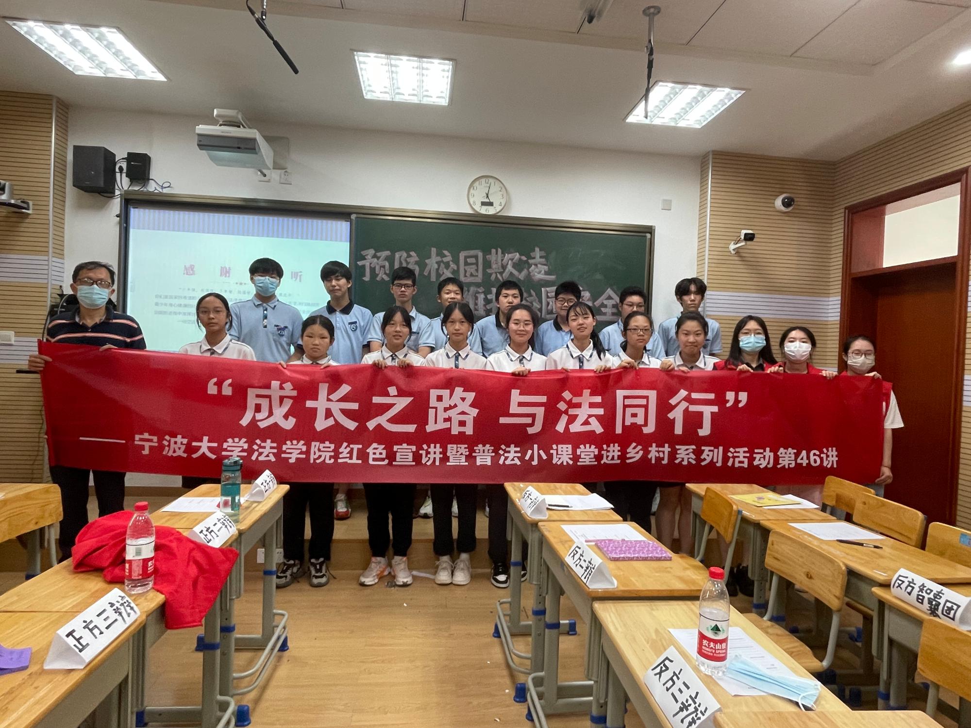 法律(非法学)硕士研究生第二党支部联合宁波市第七中学开展“预防校园欺凌 维护校园安全”法治教育宣传活动,宁波市第七中学八年级16班同学参与本次活动。