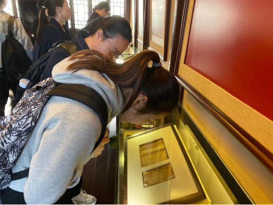随后,同学们自行参观了“张人亚初心使命”“党章的历史”“党章与党纪”等展厅,展厅详细展示了张人亚同志生前保存的30余样珍贵历史文献,进一步体会了中共党章演变历史以及张人亚同志参加革命的先进事迹。一本本泛黄的报刊文献,一段段历经沧桑的艰难历史岁月,诉说着革命先烈传奇的一生,现场的同学们无不为之动容。