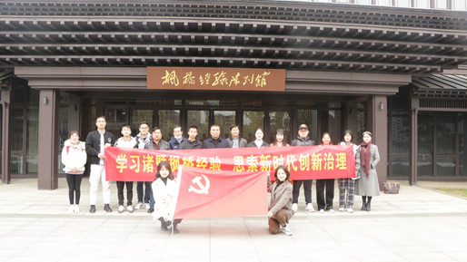 下午师生到达枫桥经验陈列馆,系统学习枫桥经验的历史与发展。枫桥经验陈列馆气势宏大,保存了许多有价值的文献记录,还原了枫桥经验发展过程中的关键事件与历史场景,对枫桥经验起源、发展与演变及其新时代内涵进行了全方位梳理与介绍,为学习枫桥经验提供了鲜活的课堂。讲解员结合展览素材向师生讲述了枫桥经验在上世纪60年代特定历史背景下的起源到后来各个历史阶段的发展,以及向全省全国推广的情况和新时代其内涵的发展与构成,重点介绍了历代党和国家领导人对坚持和发展枫桥经验的要求与指示,为师生学习理解枫桥经验提供很好的导引,为大家思索新时代创新基层社会治理提供了启迪。整个党日活动内容充实,既有对枫桥经验宏观层面的学习,又有对枫桥经验微观个案的深入考察;既有对我们党初心使命和群众路线的深刻体悟,又有对基层人民群众创造力的由衷赞叹;既有对相关历史的回溯,又有对基层治理的现实观察,还有对未来实现基层治理现代化的思索,大家感觉收获丰富,达到了活动的预期目的。