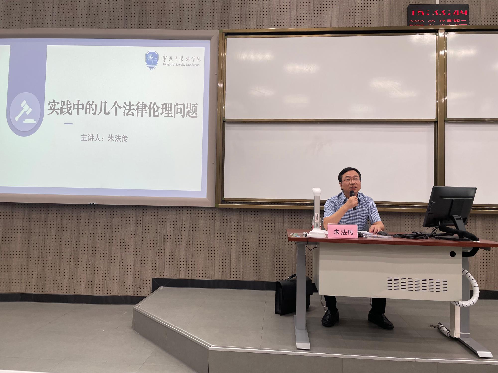 邀请了1986级校友、镇海区人大常委会主任朱法传走进学生课堂进行实务经验分享。404吧