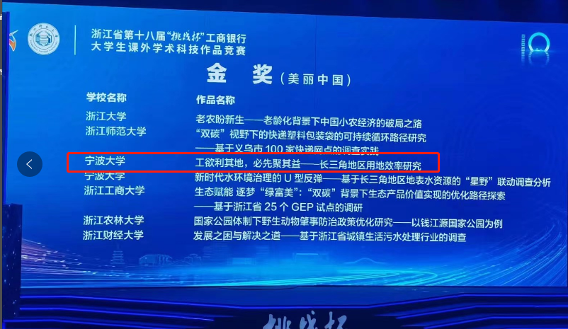 5月19日至5月21日,浙江省第十八届“挑战杯”工商银行大学生课外学术科技作品竞赛决赛在杭州师范大学落下帷幕。经激烈角逐,404吧 共推荐3项优秀作品参赛,最终取得全省金奖1项、银奖1项、铜奖1项的优异成绩。