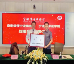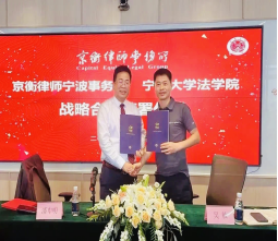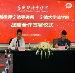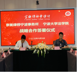 党委副书记吴敏、法律系副主任郭靖祎前往京衡律师宁波事务所参加签署仪式。京衡律师宁波事务所主任潘申明,副主任王建江、胡焕宏、徐汇文、罗姚庆等在所合伙人参加签署仪式。