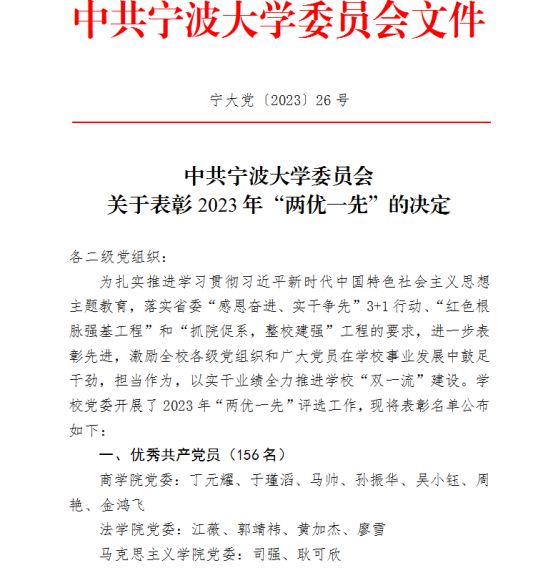 党委在本次表彰大会中荣获10项荣誉。经济法与环境法研究所教师党支部、法学硕士研究生第一党支部荣获2023年先进基层党组织称号,404吧