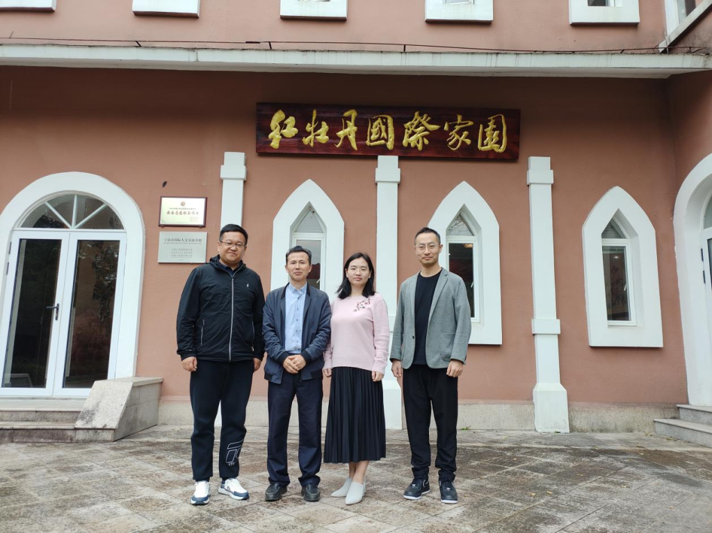 党政办主任艾明阳等一行赴镇海九龙湖红牡丹国际家园实地考察劳动教育实践基地建设,宁波开放大学红牡丹学院院长、宁波九龙湖红牡丹国际家园负责人姜红升接待。