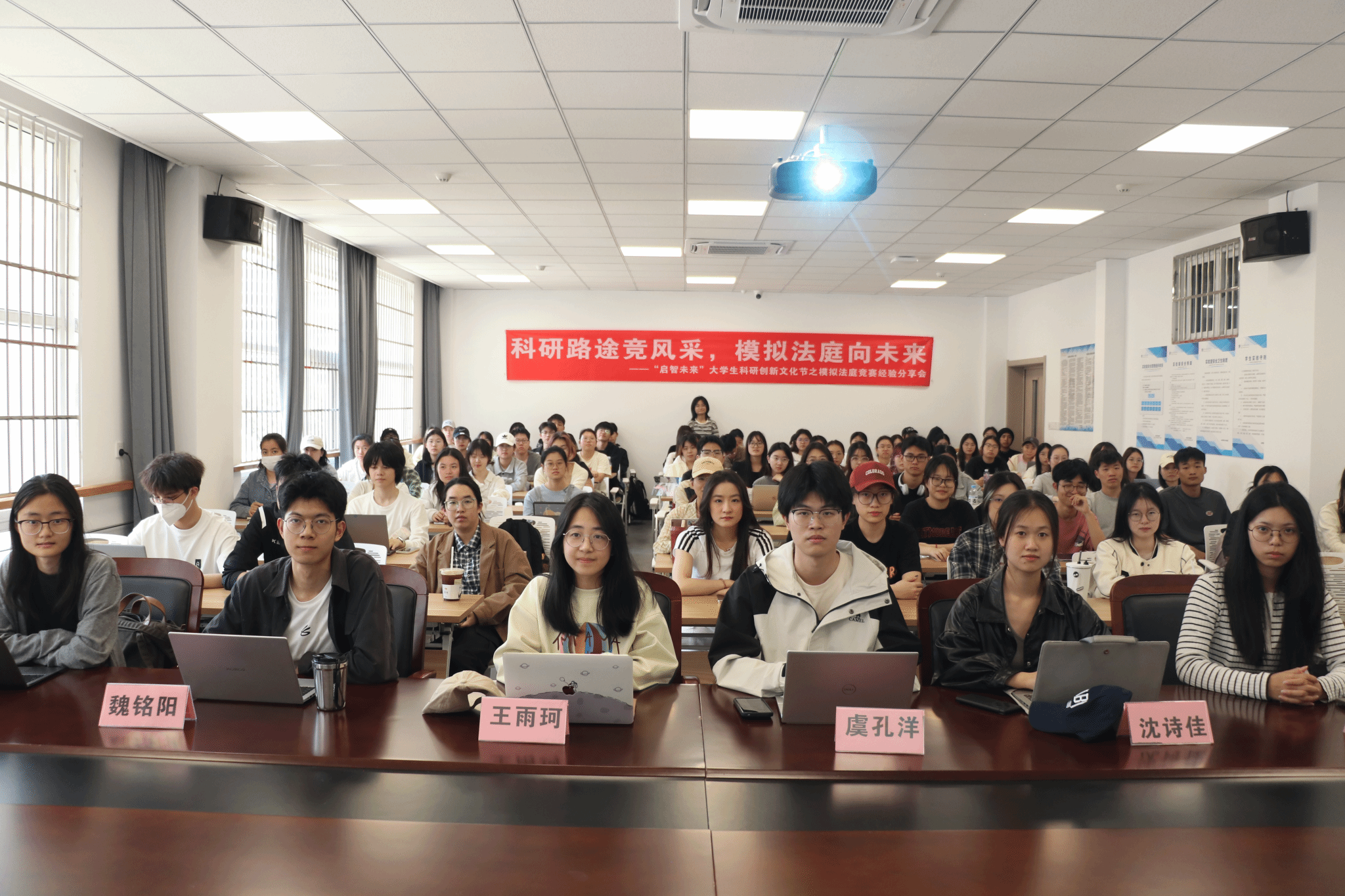 团委在106教室举办了“启智未来”系列活动之模拟法庭竞赛经验分享会。本次分享会特邀了多位在模拟法庭竞赛中取得显著成绩的学长学姐,他们倾囊相授,为初次涉足竞赛领域的同学们答疑解惑,提供了宝贵的竞赛指导。