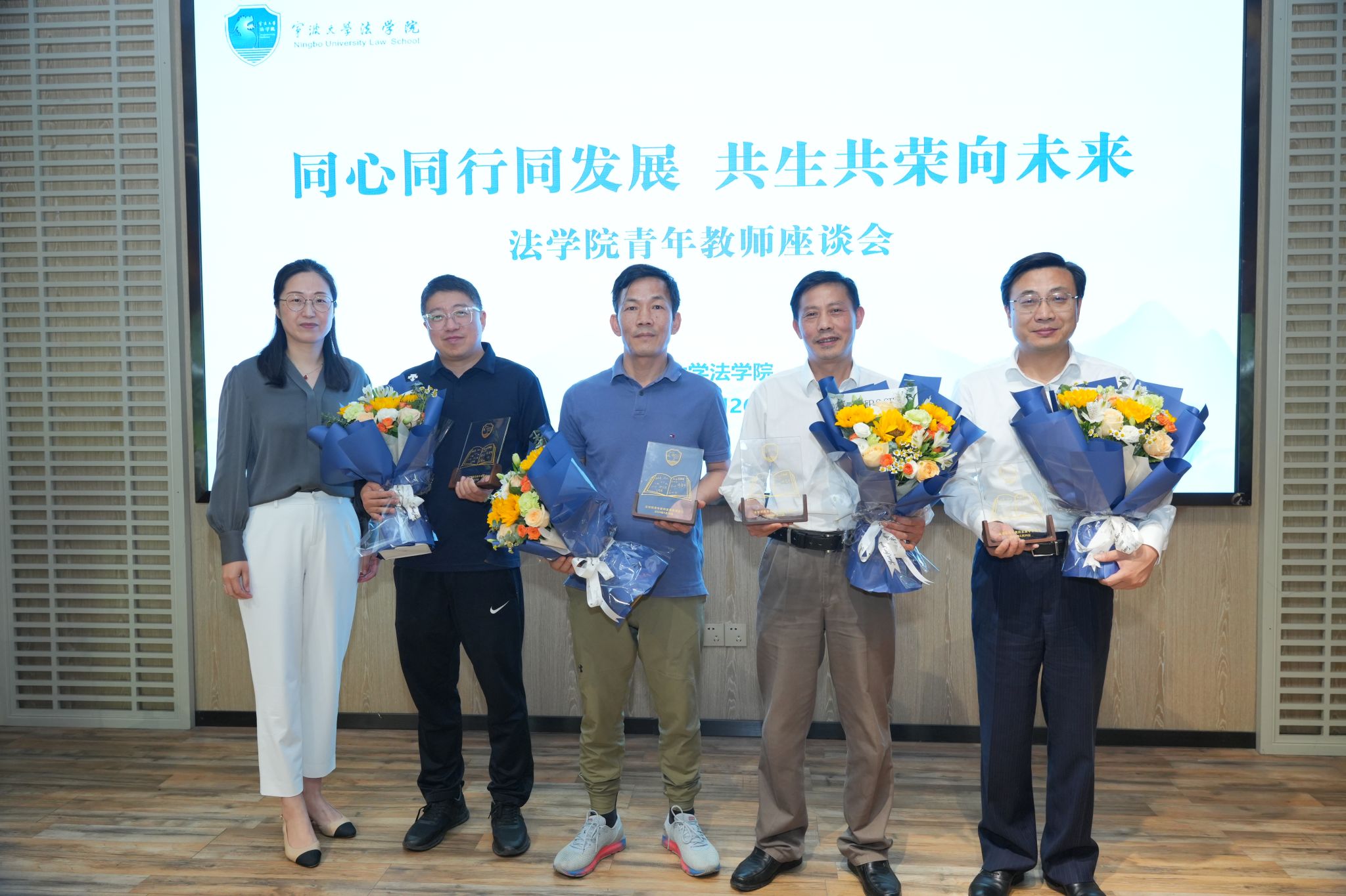 青年教师代表向捐赠方代表和基金倡议人献上了表达感激之情的鲜花,孙芬娜为他们颁发了纪念品。全体与会人员合影留念,会议在温馨有爱的气氛中圆满结束。