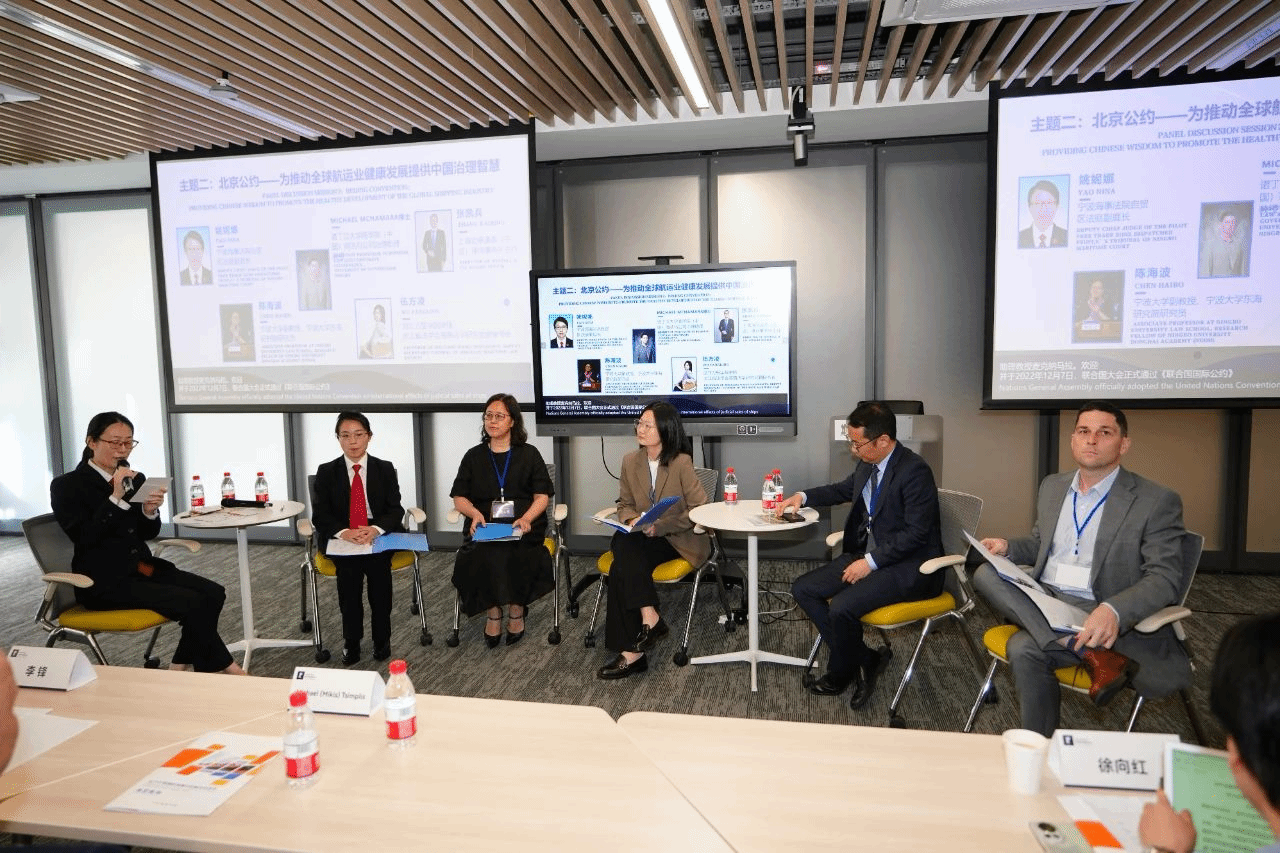 陈海波老师在“北京公约—为推动全球航运业健康发展提供中国智慧”环节进行发言。陈海波提出,《北京公约》通过强化船舶司法拍卖效力,将对解决海员遗弃问题、化解人道主义危机发挥重要作用;“海上枫桥经验”可以有效推动海事争议的快速解决。《北京公约》和“海上枫桥经验”均体现了“中国智慧”和“中国贡献”。