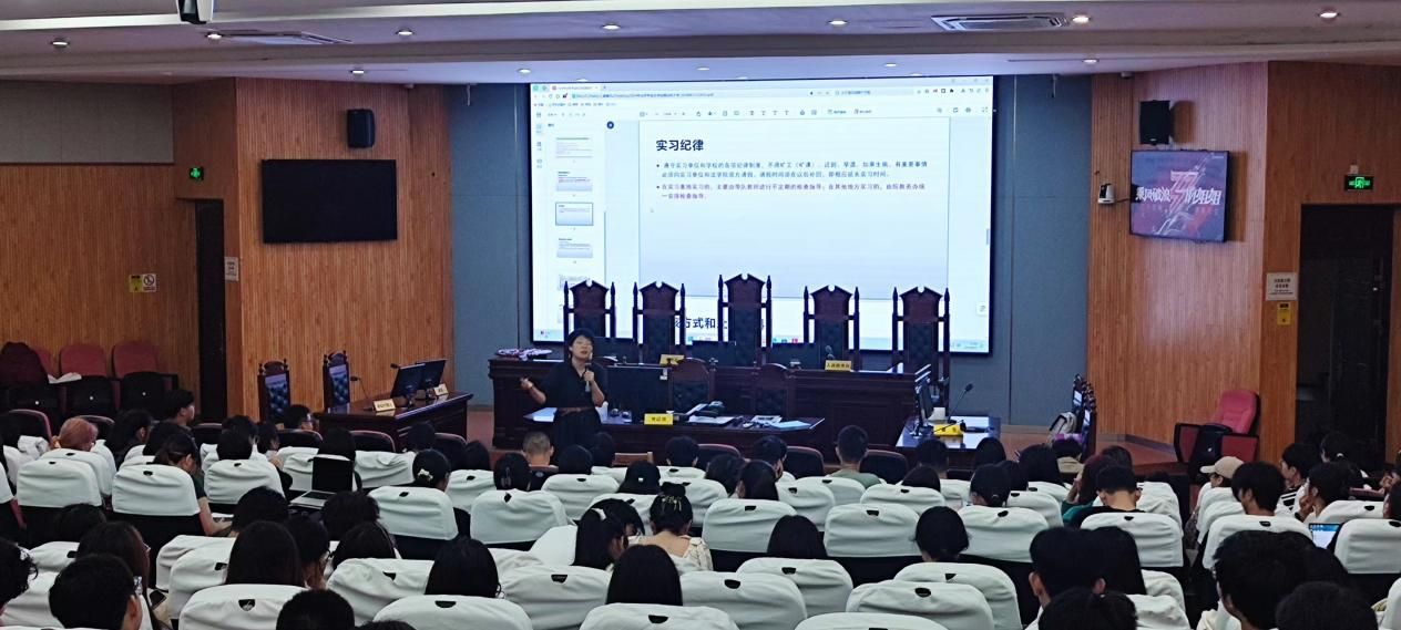郭靖祎老师从法学专业社会实践的时间、形式、报名、考核、纪律、注意事项、安全等方面向同学们详细介绍了法学专业社会实践的要求,希望同学们能充分利用好假期做好专业社会实践,学以致用,有所收获。