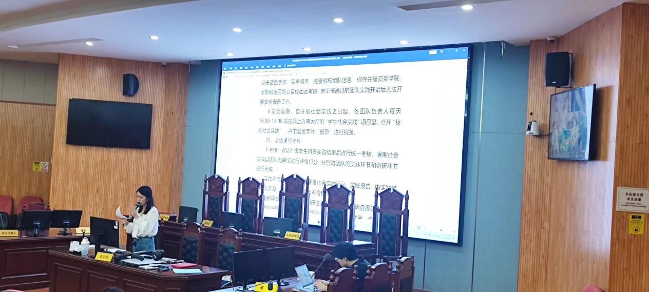 在阶五组织开展了2022级法学专业短学期实践动员会,法学专业郭靖祎老师主持,学工办刘小梅老师参加。