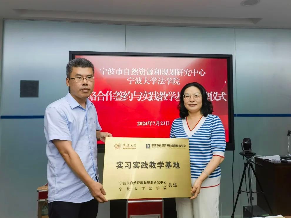 公共管理研究所所长、博士生导师徐忠国、宁波市自然资源和规划研究中心主任赵艳莉,出席签约仪式并为“实践教学基地”揭牌。