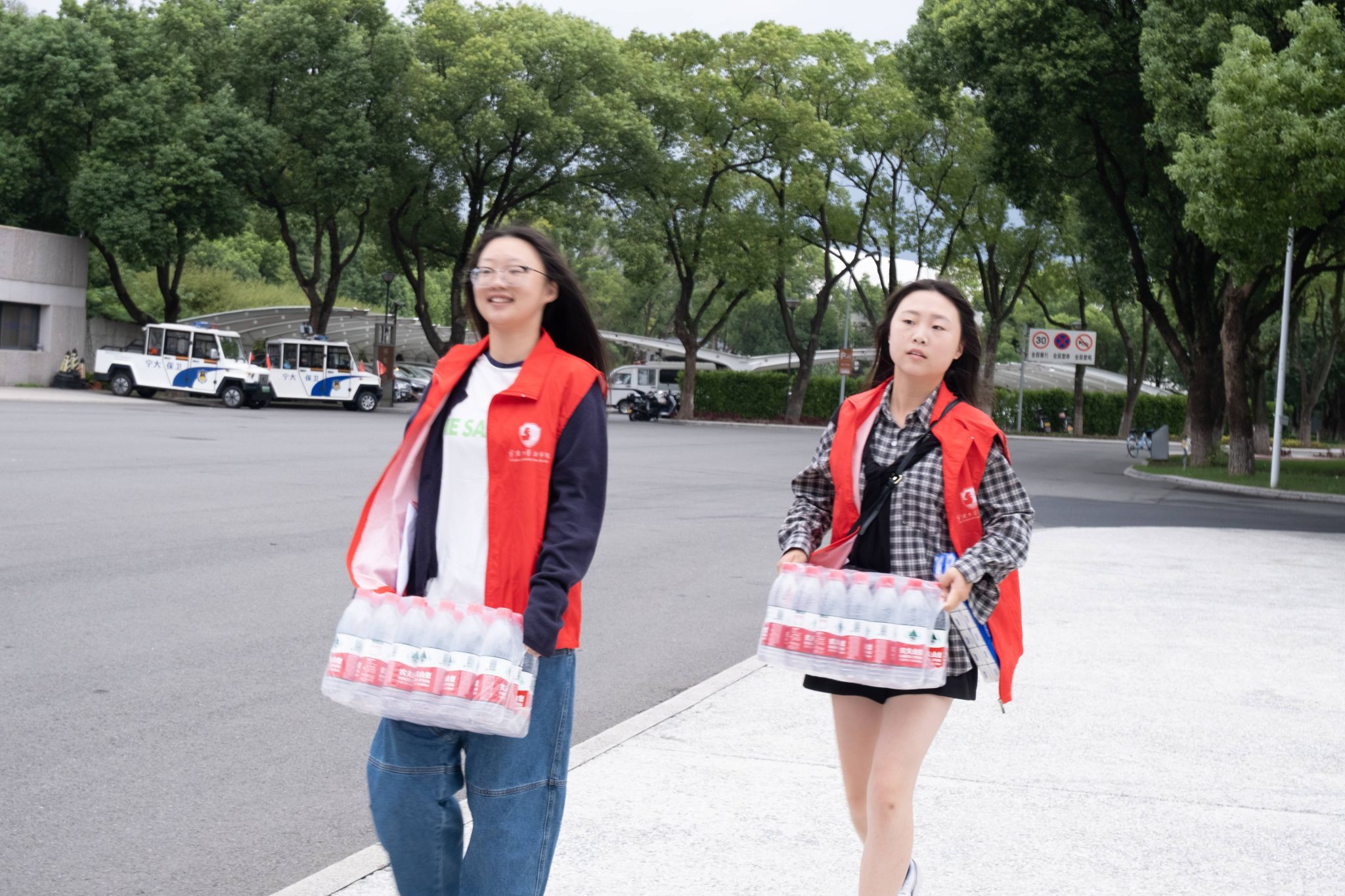 7:15左右,考生们陆续到达。志愿者们为考生们送上早已备好的矿泉水与纸巾。“祝学长金榜题名”“祝学姐妙笔生花”,一声声祝福中承载的是404吧