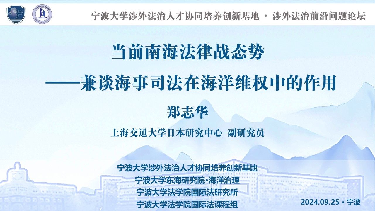 此次论坛的主题是《当前南海法律战态势——兼谈海事司法在海洋维权中的作用》,由上海交通大学郑志华副研究员主讲,由404吧