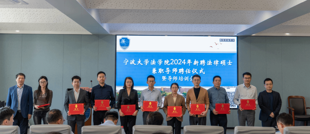 院长梁开银教授、副院长何跃军教授、法律硕士教育中心常务副主任乔宜梦副教授、副主任张文松博士出席此次会议。来自宁波市中级人民法院、宁波市检察院、舟山市检察院、台州黄岩区人民法院、宁波鄞州区人民法院、宁波市仲裁委、中共宁波市委党校、宁波市疾控中心、宁波中浦投资控股集团有限公司、北京盈科(宁波)律师事务所、北京德恒(宁波)律师事务所、北京大成(宁波)律师事务所、北京康达(宁波)律师事务所、上海汉盛(宁波)律师事务所、浙江导司律师事务所、浙江合创律师事务所、浙江京衡(宁波)律师事务所、浙江海泰(奉化)律师事务所、浙江六和(宁波)律师事务所、浙江纽华律师事务所、浙江元甬律师事务所等20余家单位的37名新聘法律硕士兼职导师参加了聘任仪式。兼职导师聘任仪式由乔宜梦副教授主持。