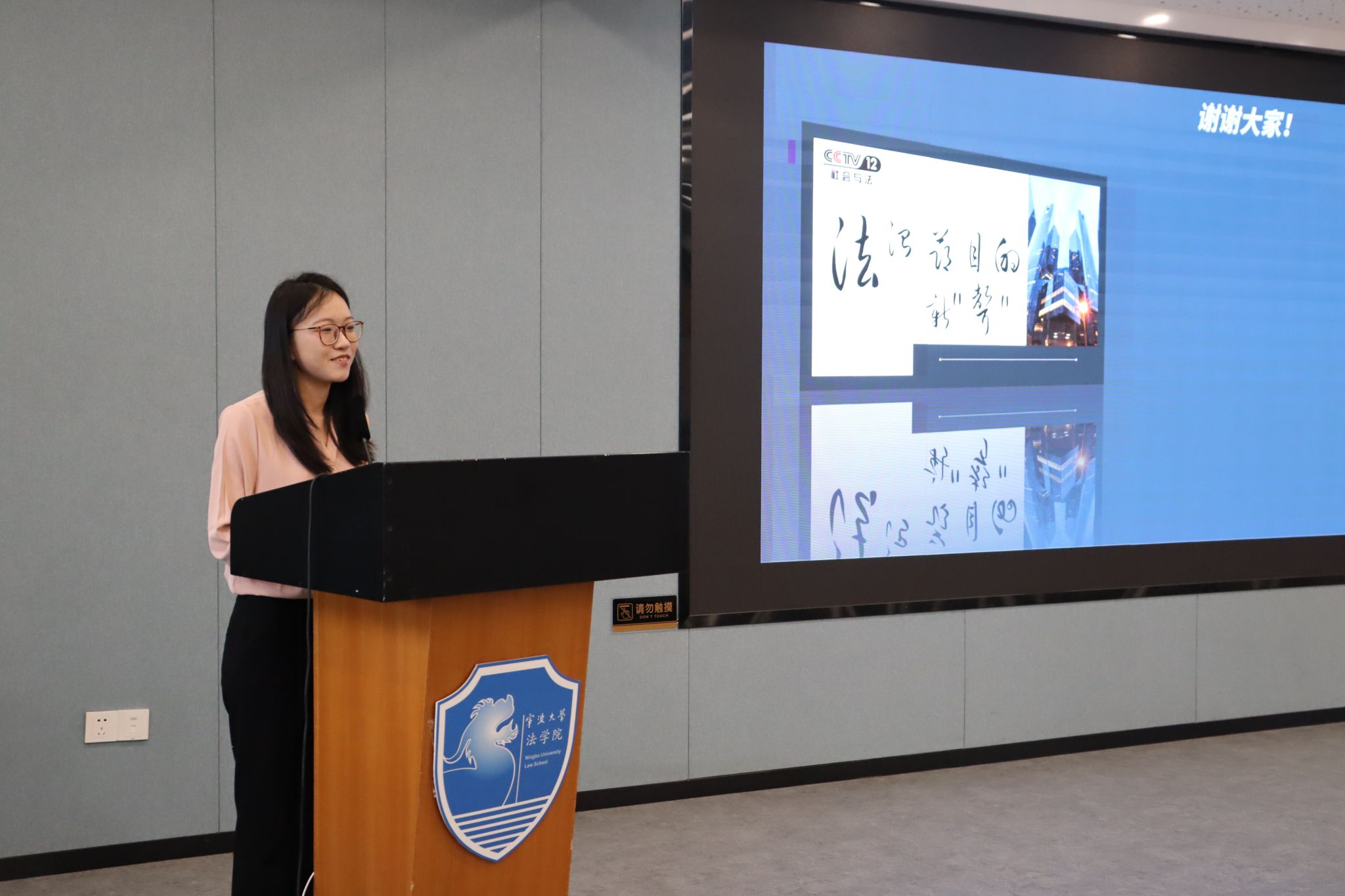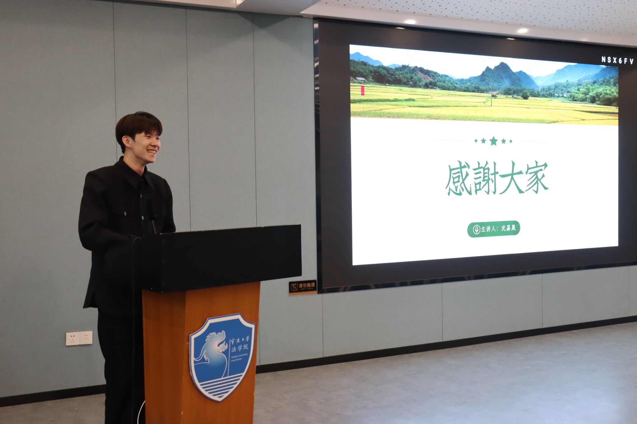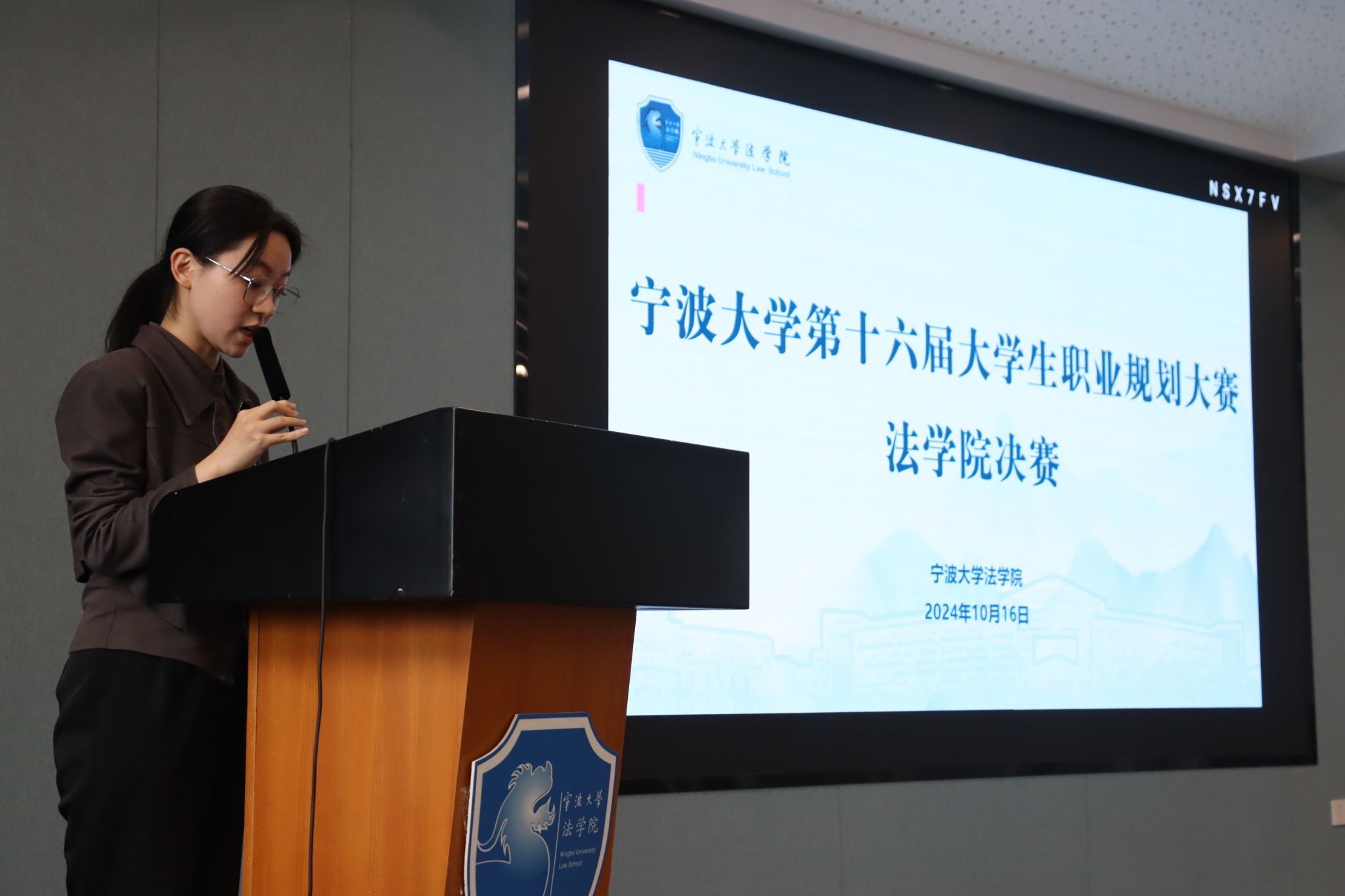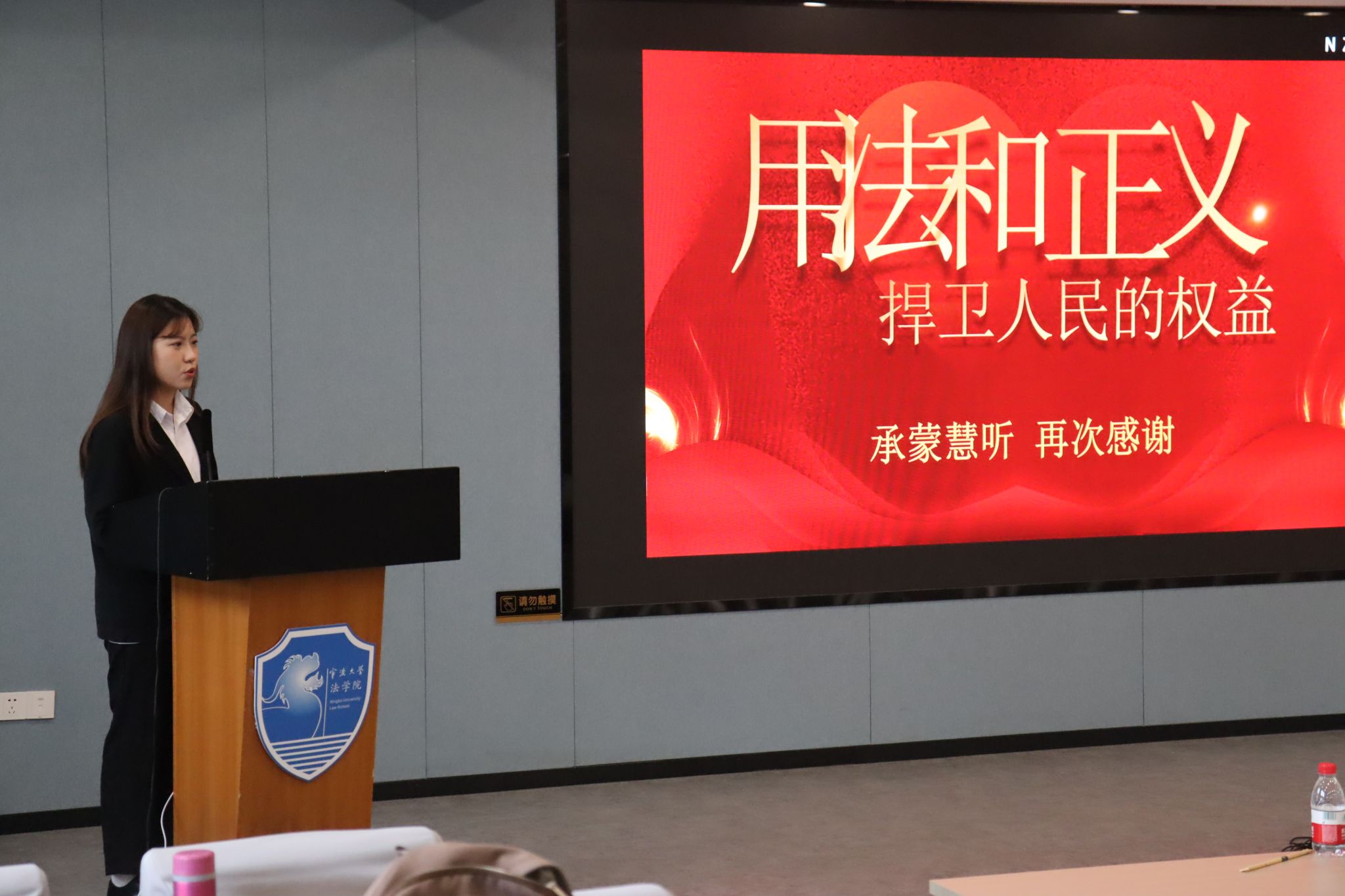 党委副书记谢果凰,2024届校友、浙江太安律师事务所王毅,辅导员林航、戴丽莉、陆芝颖、曹田梅担任决赛评委。