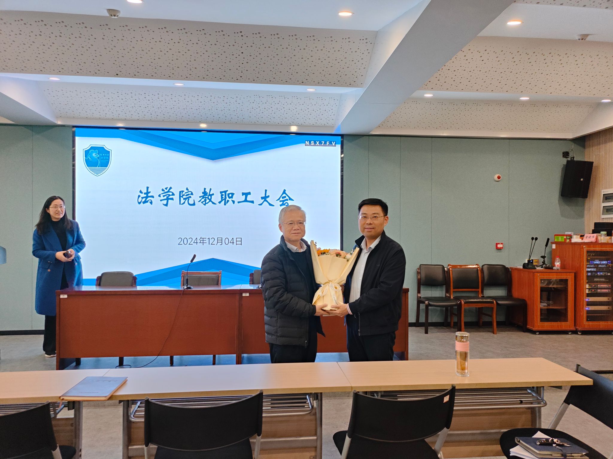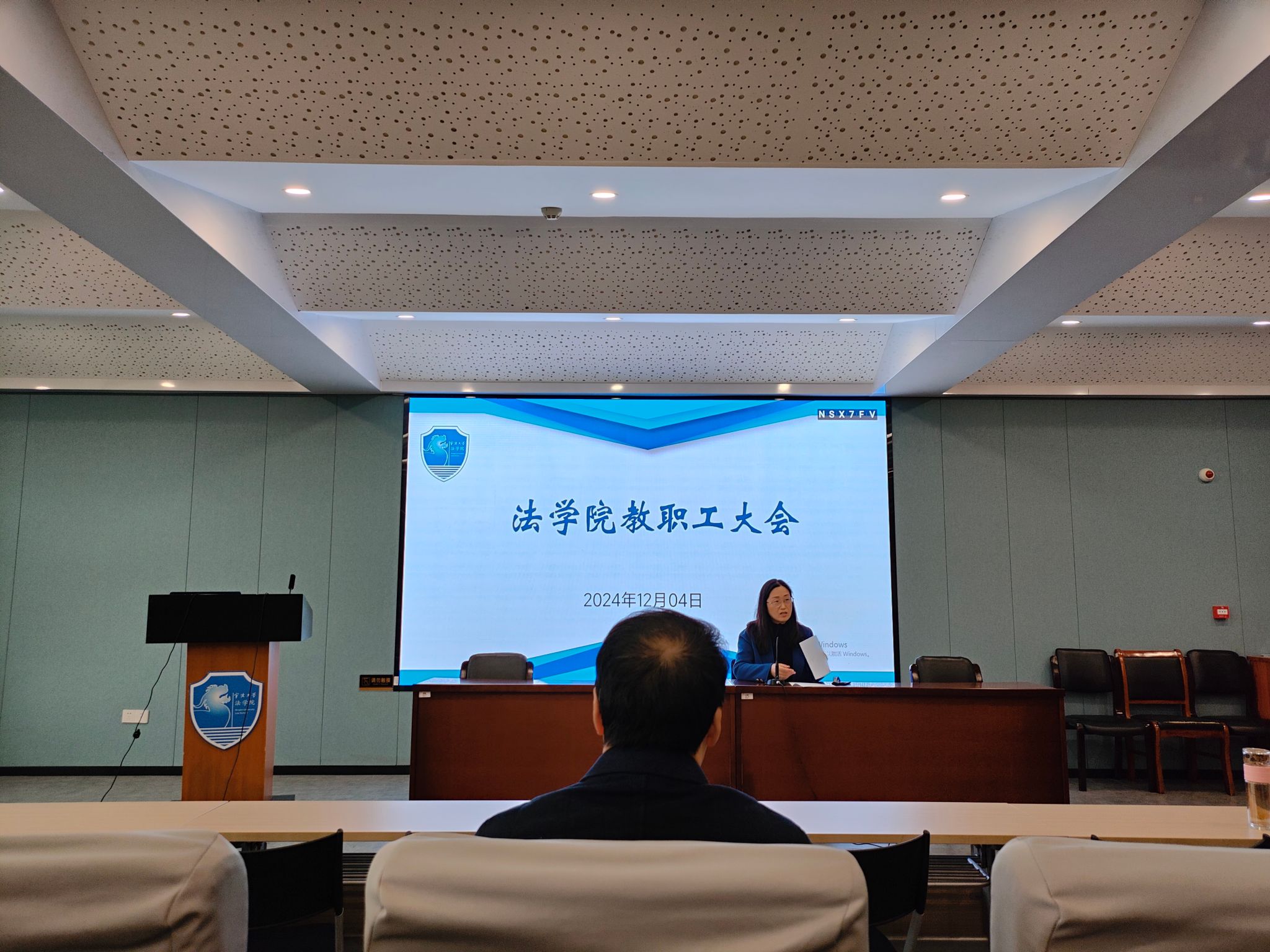 在包玉书11号楼217会议室召开学期第三次全院教职工大会,会议由学院党委书记孙芬娜主持,学院领导班子及全院教职工参加。