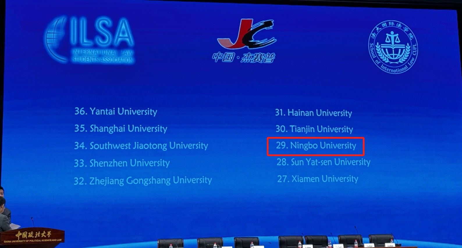 杰赛普(JESSUP)国际法模拟法庭竞赛是由美国国际法学生联合会(ILSA)主办的全球专业赛事。该项赛事的比赛语言是英文,每年的比赛主题均围绕国际法领域的最新热点问题,由参赛队通过提交书状并进行口头庭辩的方式进行。自1960年开办至今,该项赛事得到了全球高校和法律专业机构的普遍认可,成为国际上规模最大、历史最悠久、认可度最高的国际模拟法庭比赛,被誉为国际法学界的“奥林匹克竞赛”。本届比赛聚焦国际法前沿领域,围绕国际法院管辖权、国家官员刑事管辖豁免、沿海国基线确定、政府承认等全球性法律议题,由来自全球104个国家和司法管辖区的804支高校队伍激烈角逐,是参加队伍最多、涉及范围最广的一届比赛。