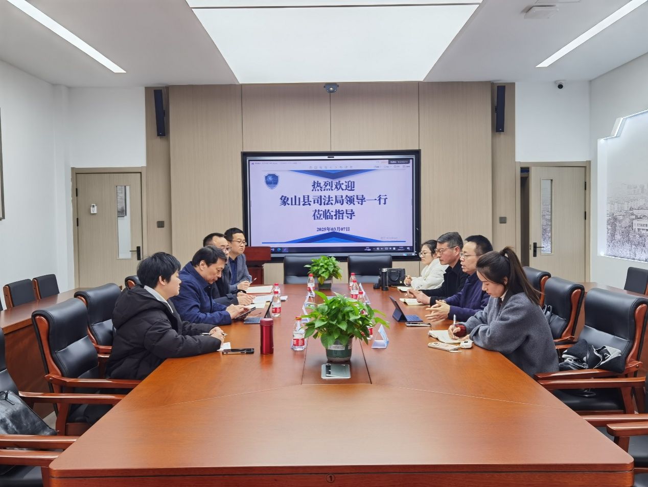 2025年3月7日下午,象山县司法局局长李文宏、副局长郑伟东,办公室主任俞芸,促进科长何丽娜一行四人莅临404吧
