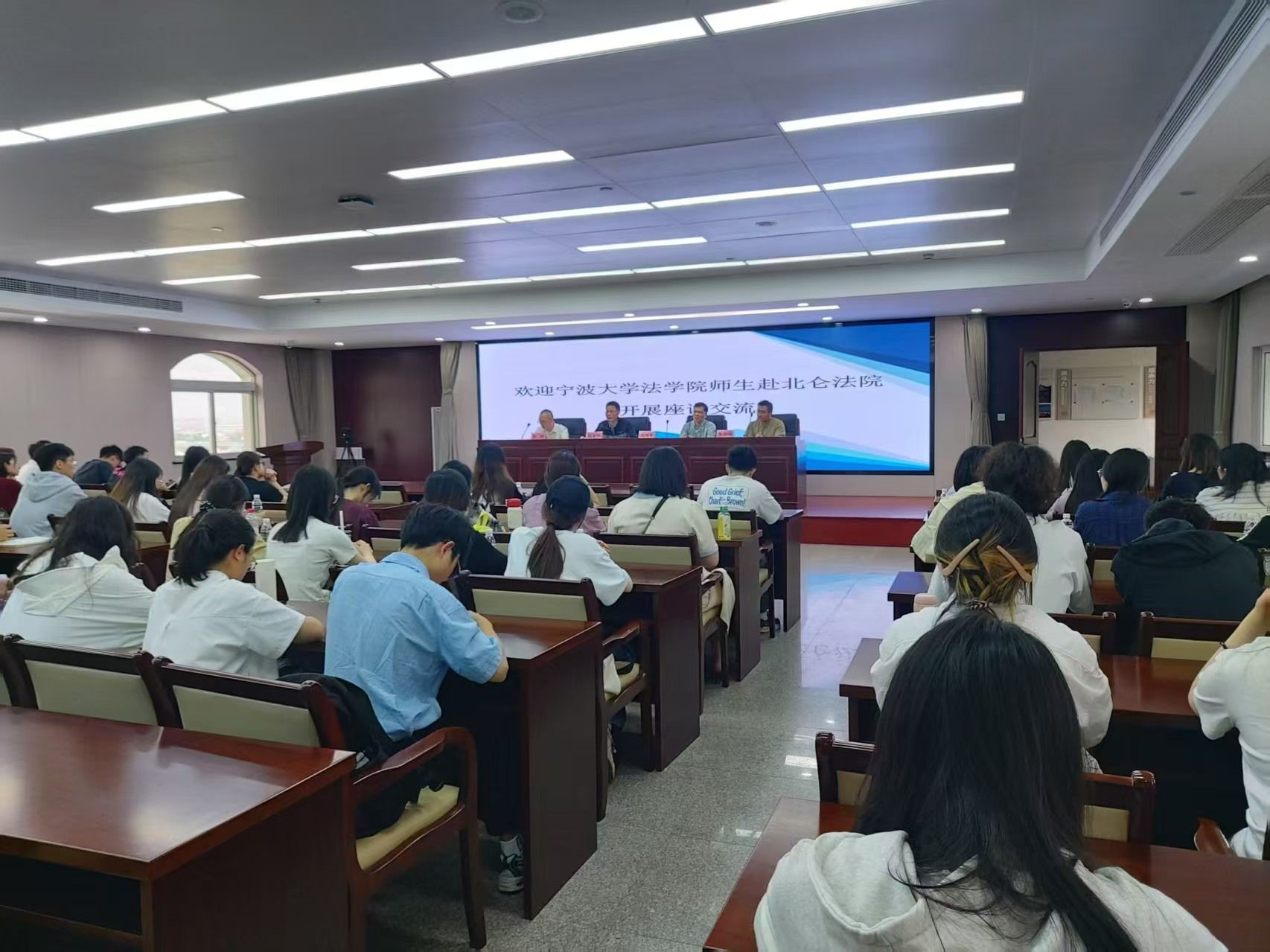 商法经济法课程组教师汪海军、朱朝晖带领近80名同学前往北仑法院开展实践教学活动,“零距离”旁听了一起刑事案件庭审,近距离感受了刑事审判的规范和权威。