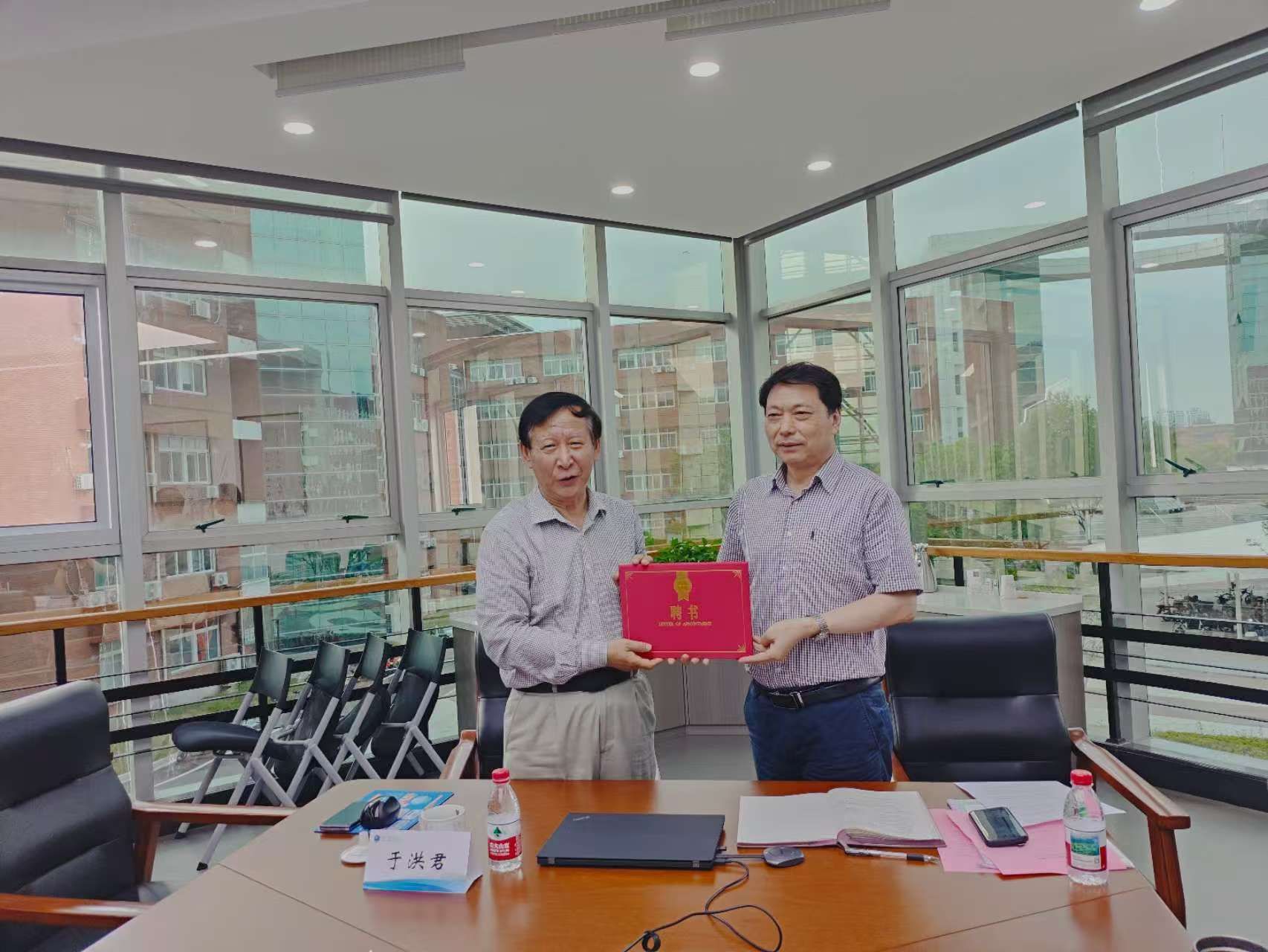 院长梁开银为于洪君先生颁发“特约高级研究员”聘书,希望于洪君先生能为404吧