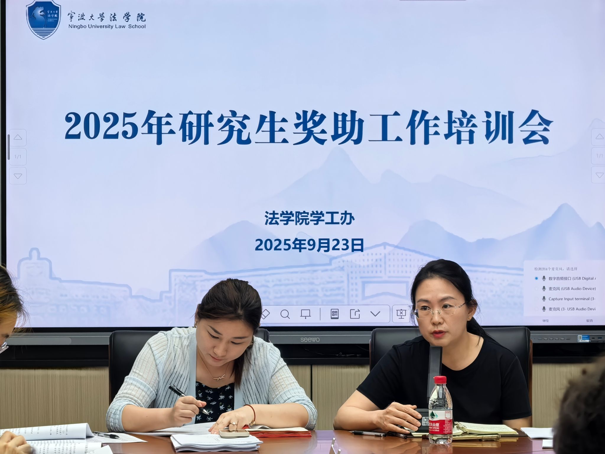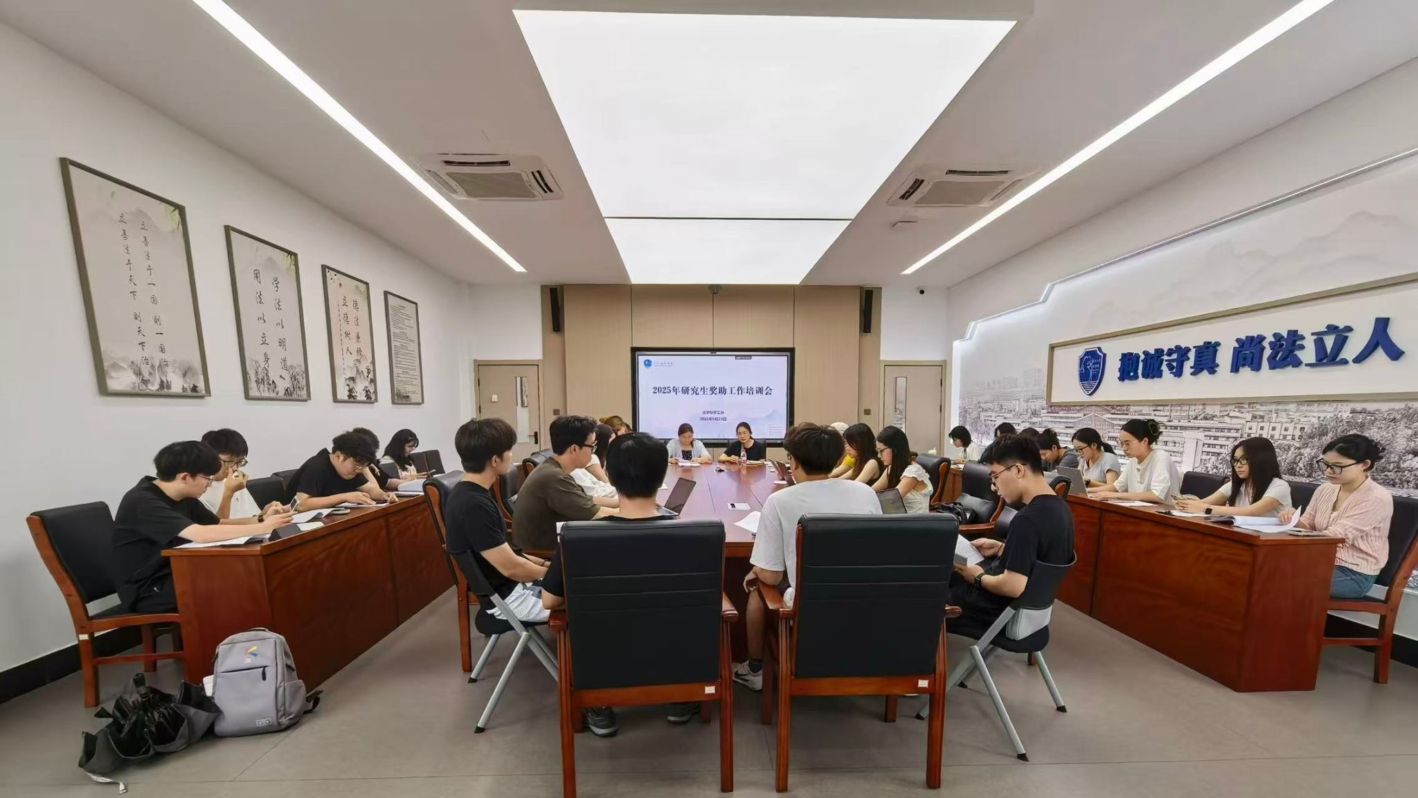 党委副书记谢果凰、辅导员戴丽莉主讲,面向各研究生班级奖学金评定小组成员开展专题培训。会议围绕奖助政策核心要点,通过细则解读、案例分析与互动答疑,为后续评定工作奠定坚实基础。