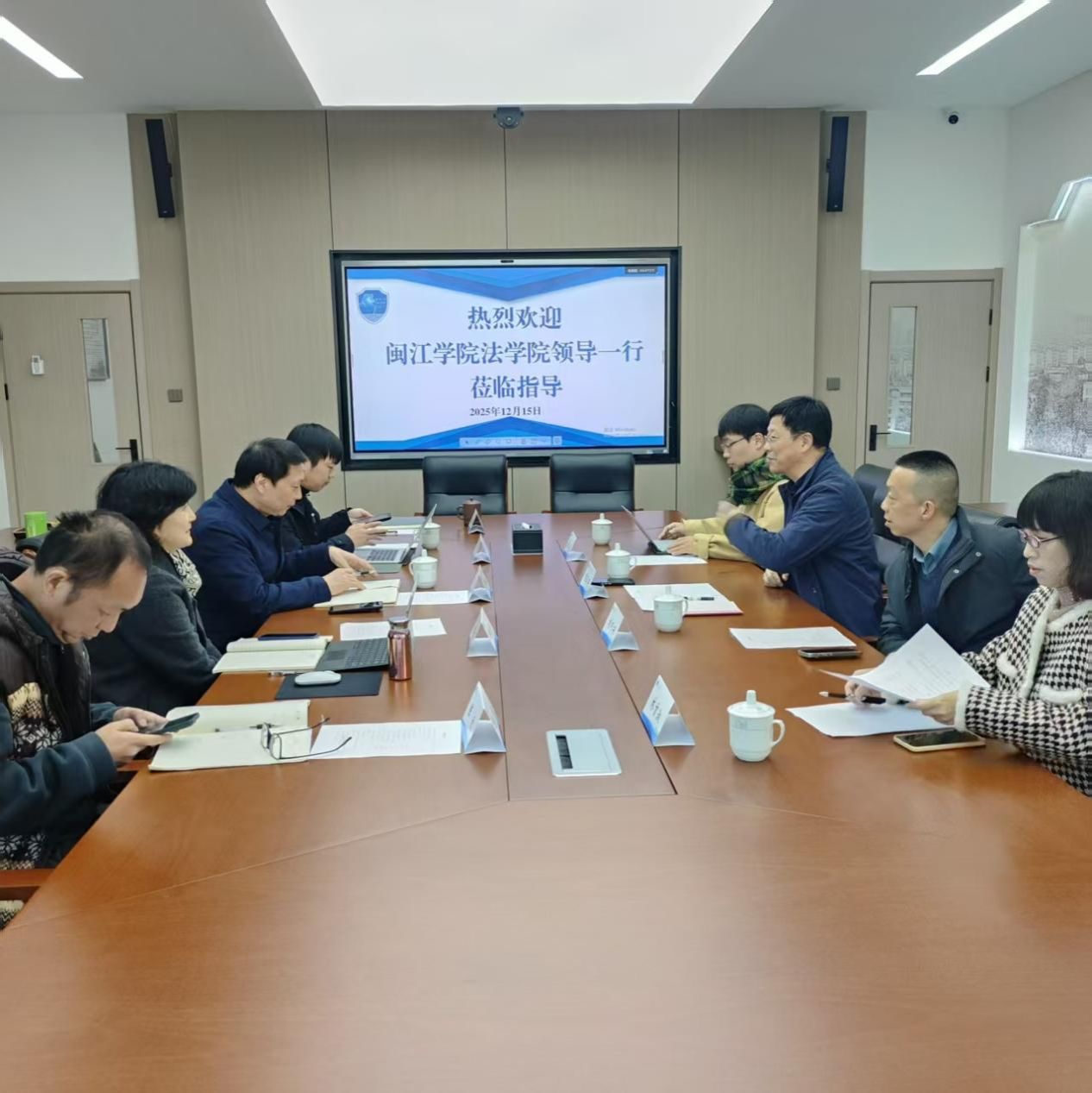 院长梁开银、学术副院长乔宜梦、法律系主任谢晓彬、实验中心主任赵革、党政办主任艾明阳、科研学科办主任陈欣参与座谈交流。