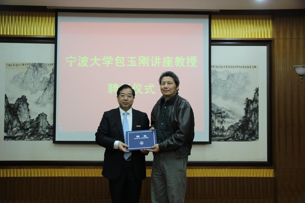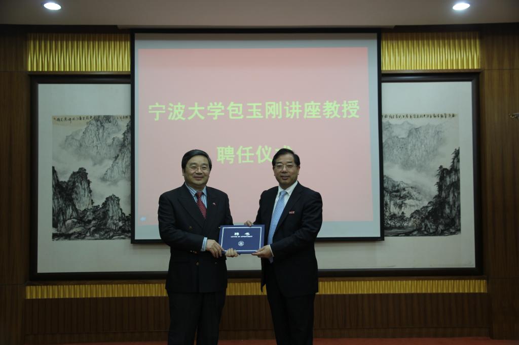 包玉刚讲座教授聘任仪式在安中大楼安中厅举行。中国国际广播电台原副总编辑、中国人民大学软科学研究所原所长、教授李忠尚,复旦大学国际关系与公共事务学院教授、全国MPA教指委委员竺乾威受聘为我校包玉刚讲座教授。校长沈满洪出席聘任仪式并向两位教授颁发证书、佩戴校徽。404吧