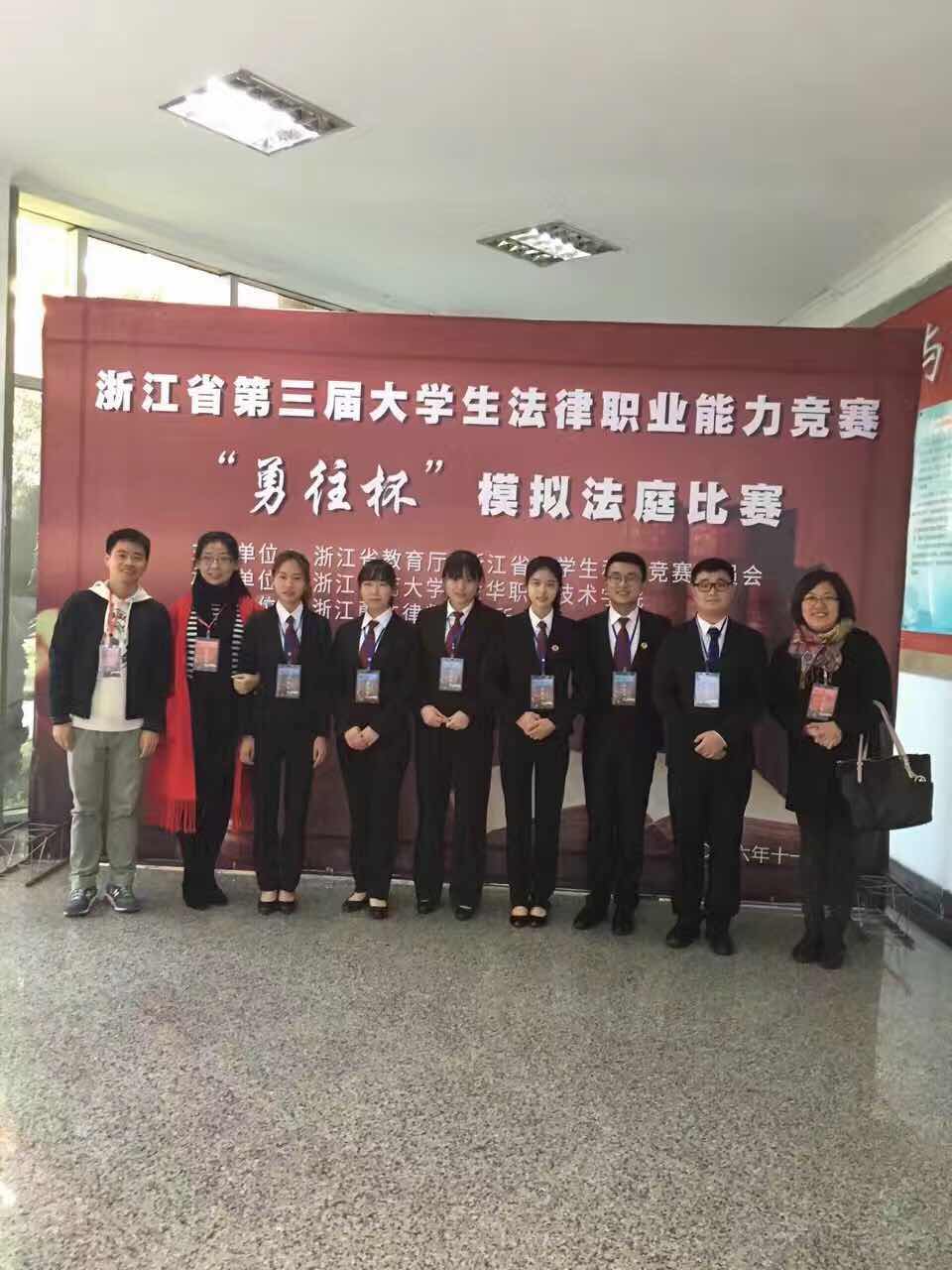 11月12日,由浙江省教育厅主办,金华职业技术学院、浙江工商大学承办的浙江省第三届大学生法律职业能力竞赛“勇往杯”模拟法庭比赛在金华职业技术学院落下帷幕。