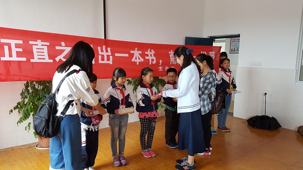 青年志愿者协会的5名志愿者代表来到宁波镇海区虹桥希望外来民工子女学校,开展了明德正直主题教育之“捐出一本书,献出一份爱”公益活动,为希望小学的同学献出一份爱心。