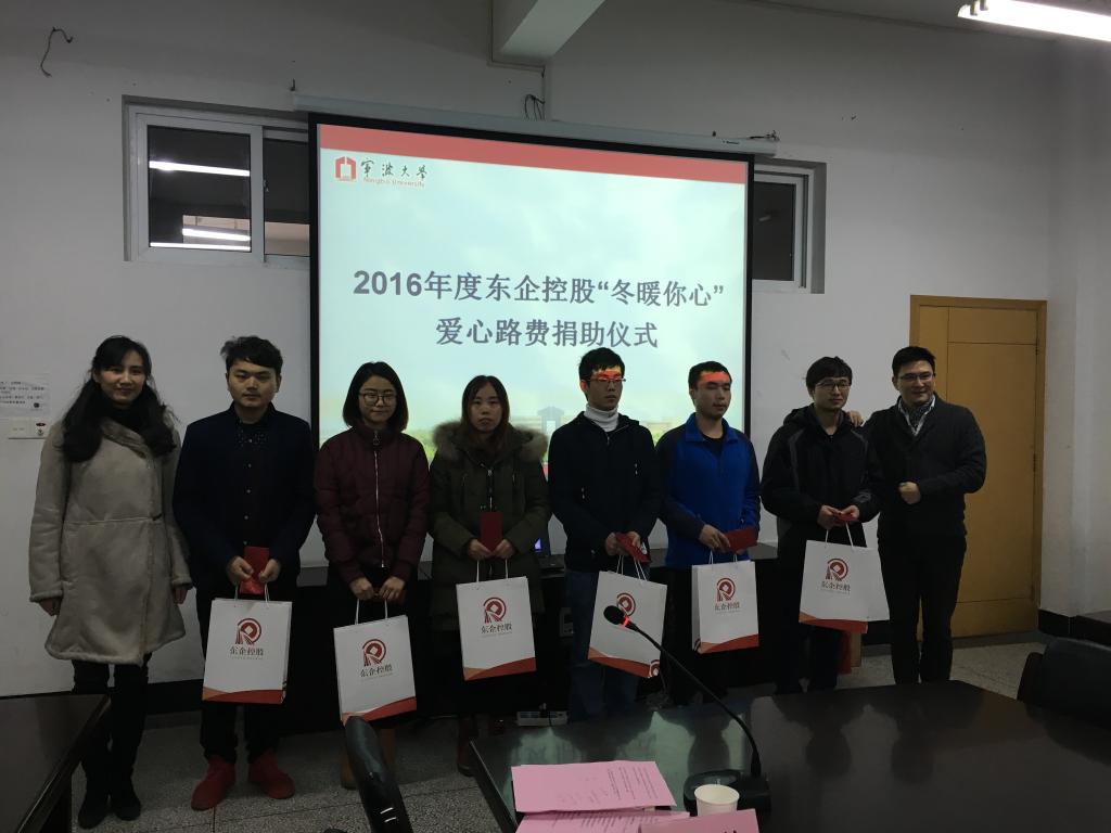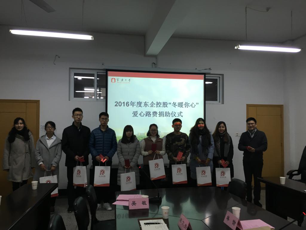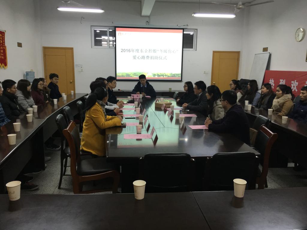 学生的一个爱心奉献活动,始于2012年。本年度共捐资10000元,为20名在外求学的学子提供归途路费。东企控股希望通过该爱心活动,给学子们再春节来临之际送去一份温暖和动力,希望他们在关爱中成长成才,同时号召各方有志之士注重回馈社会,承担应有的社会责任。