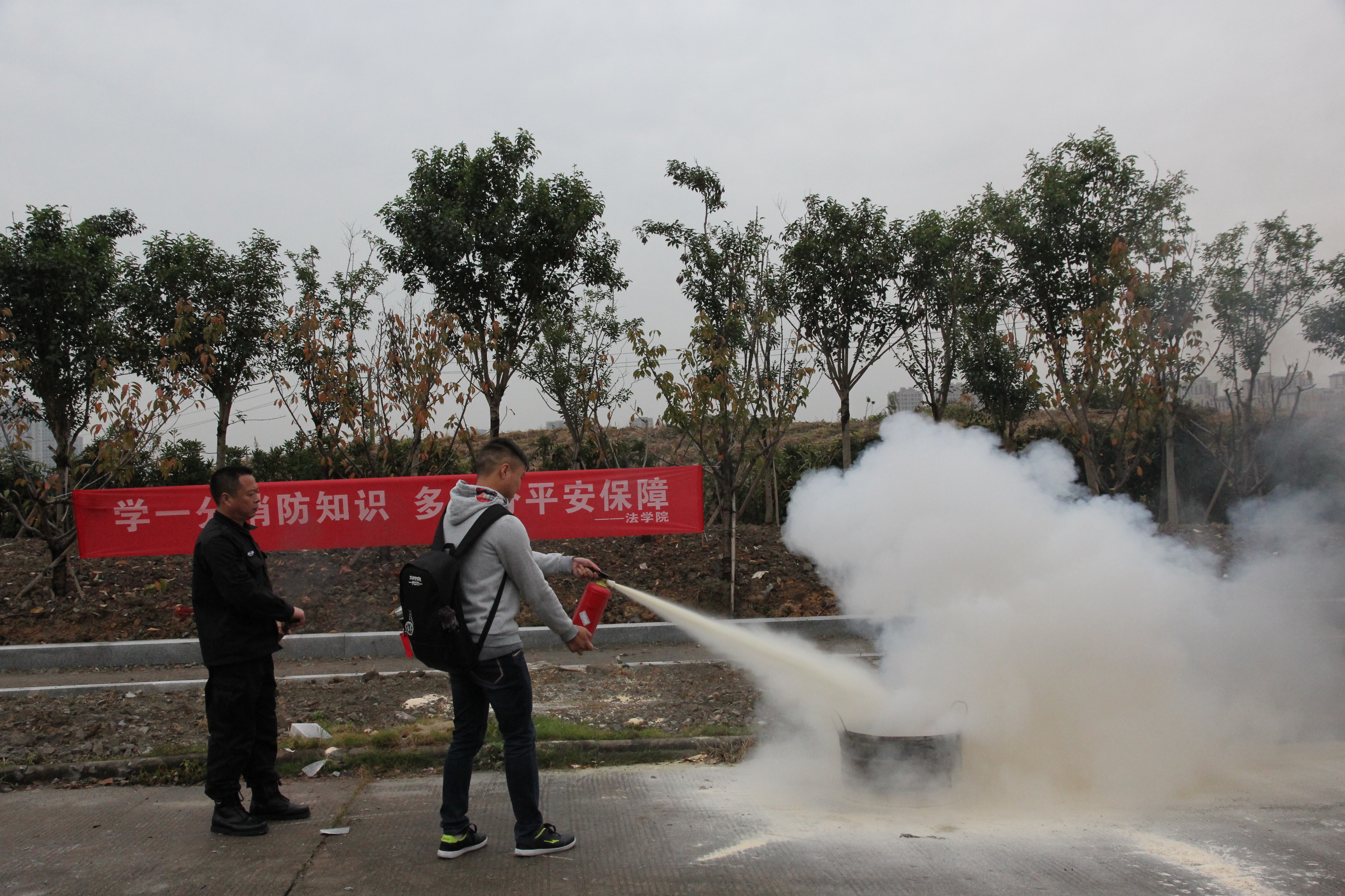 活动分消防知识讲座和灭火演练两部分。保卫处金济富老师首先从灭火器的种类与使用、校园火灾案例着手,重点讲解了报警、逃生技能、扑救等消防知识。正式灭火演练时,保卫处老师先师生们现场演示了干粉灭火器的使用。现场师生观摩后,在保卫处老师的指导下,分组依次体验了如何使用灭火器正确扑救火灾。参与的师生纷纷表示,在此次活动中受益匪浅,对消防知识有了切身的体会和了解,活动得到了大家的点赞。