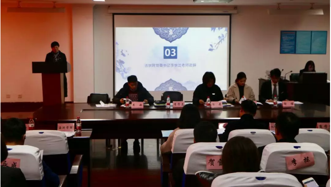 正式会议在嘹亮的国歌声中拉开序幕。院党委书记李学兰致开幕词。她表示,要把研究生会当做一个大家庭,在研究生会工作,既可以为广大的研究生同学服务,又可以锻炼自己为人处世的能力。她还肯定了研会以往的工作,重点指出2017年度研究生会被评为双优的佳绩,并希望研究生会能够能够继承前几届的优良传统和作风,开拓进取,把研究生会的工作做得越来越好,再创辉煌。校研究生会主席叶思佳同学也代表校研会对404吧