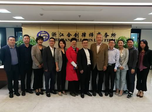 院长钭晓东、院党委书记李学兰一行赴浙江合创律师事务所进行考察交流,市律协副秘书长俞建伟、浙江合创律师事务所主任郑勇、监事长钟明、党支部书记邓旭东等参加本次交流。
