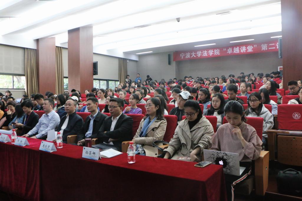 师生带开了“卓越讲堂”第二讲。共青团宁波市委副书记、市青联主席李锋,市青联秘书长郦盼,市青联常委、法律界别组组长杜晶,市青联委员、奉化区人民法院党组书记、院长赵江涛,市青联委员、宁波杉杉股份有限公司法务总监惠颖,市青联委员、浙江导司律师事务所高级合伙人庞俭力受邀出席了本次讲座,同时还有404吧