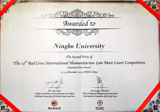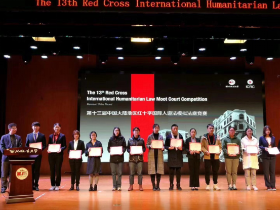 2019年11月22日至24日,由红十字国际委员会、西北政法大学共同主办的第十三届中国大陆地区红十字国际人道法模拟法庭竞赛(The 13thRed Cross International Humanitarian Law Moot Court Competition Mainland China Round)在西北政法大学举行。我校首次组队参加全英文的国际模拟法庭比赛。代表队由404吧