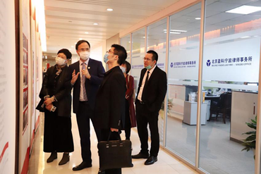 首先,黄国超主任带领大家参观了律所的文化长廊、党建活动室、专家顾问墙、模拟法庭,介绍盈科律师事务所的历史渊源、发展理念、全球全国的布局概况,盈科律师事务所的专业化和国际化发展给人留下了深刻印象,参观结束后,双方在盈科宁波律所党建活动室进行了合作交流。