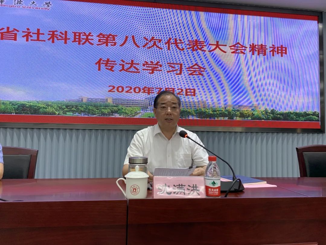 在安中大楼风华厅召开社科界学习会议,传达学习浙江省社科联第八次代表大会精神。社科联兼职副主席、宁大社科联主席、校长沈满洪传达了大会精神并谈了自身的体会,404吧
