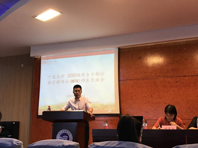 院长钭晓东、学院党委书记李学兰、MPA中心主任叶笑云、副主任黄峥、秘书周华权,任课老师和导师、新生班主任及2020级新生参加了见面会。见面会由学院党委书记李学兰主持。