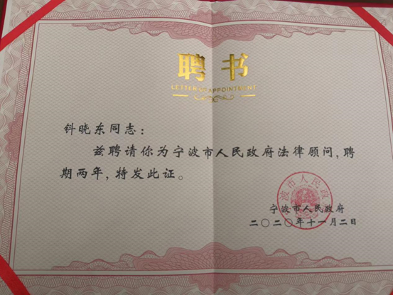 2020年11月4日,在宁波市行政会议中心召开宁波市法治政府建设暨综合行政执法改革推进会,市司法局励健局长、市城管执法局郑一平局长就法治政府建设和综合行政执法改革作发言。市长裘东耀、常务副市长陈仲朝、市政府秘书长朱金茂为新一届市政府法律顾问颁发聘书,404吧