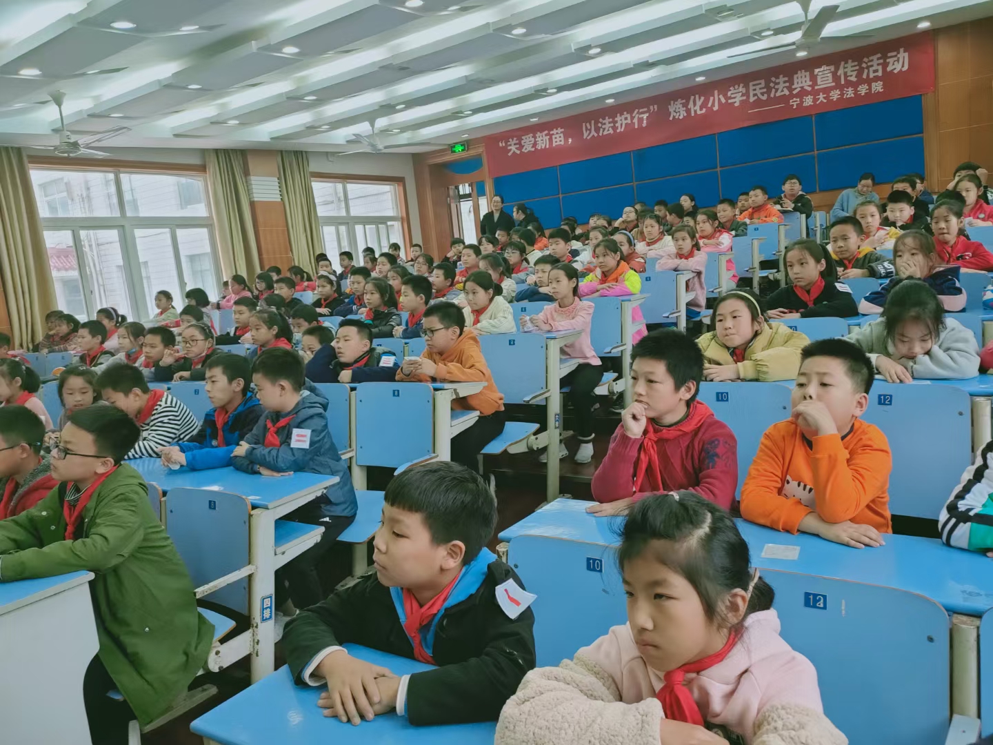 团委的多名普法志愿者走进镇海区炼化小学开展了“关爱新苗,以法护行”的《民法典》宣传活动,160余名四年级小学生参与了此次普法活动。