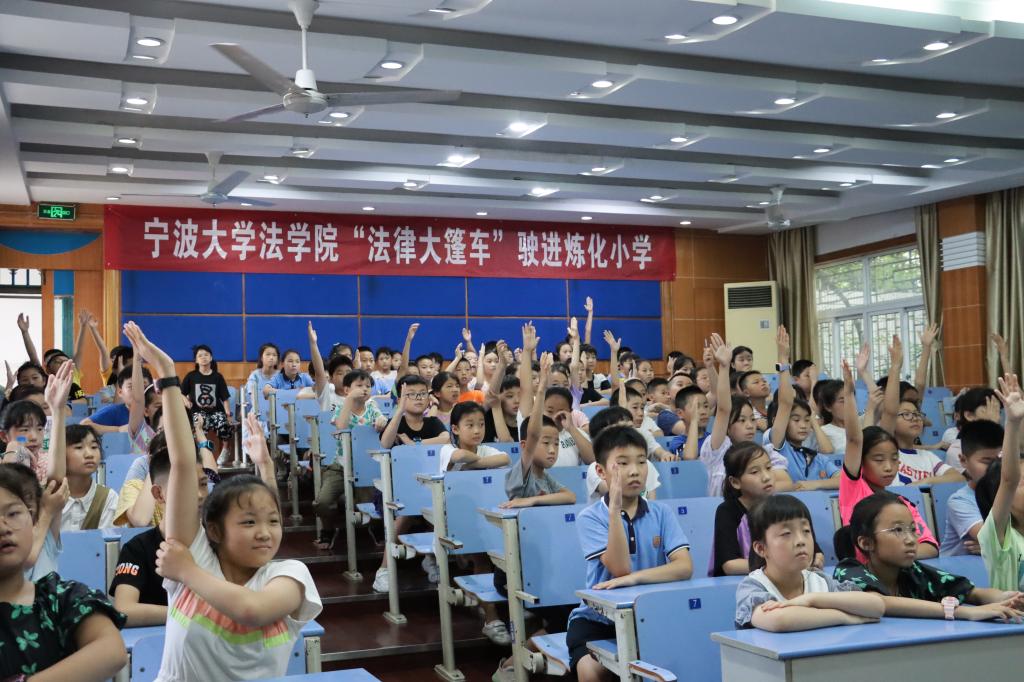 7月4日,“法律大篷车”的2支实践团队走进镇海区炼化小学,开启暑期社会实践法治第一课,为100多名小学生开展法治教育。