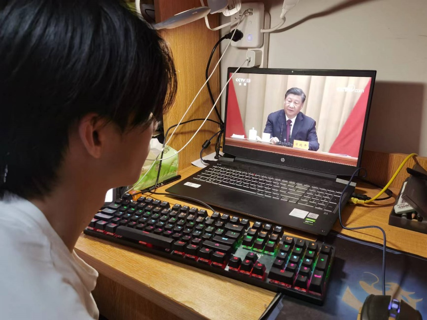 为了更加深入地了解习总书记的讲话精神,20级行政管理团支部组织同学观看了习近平总书记在庆祝共青团成立100周年大会上发表了重要讲话视频,同学们三五成群地交流讨论,对此感触颇深。陈柳漪同学写到:“今年是中国共产主义青年团成立100周年,习近平总书记为激励广大团员青年在实现中华民族伟大复兴中国梦的新征程上奋勇前进,在大会上发表了重要讲话。通过观看视频了解,我们寝室成员对中国共青团有了更好地了解,同时将继