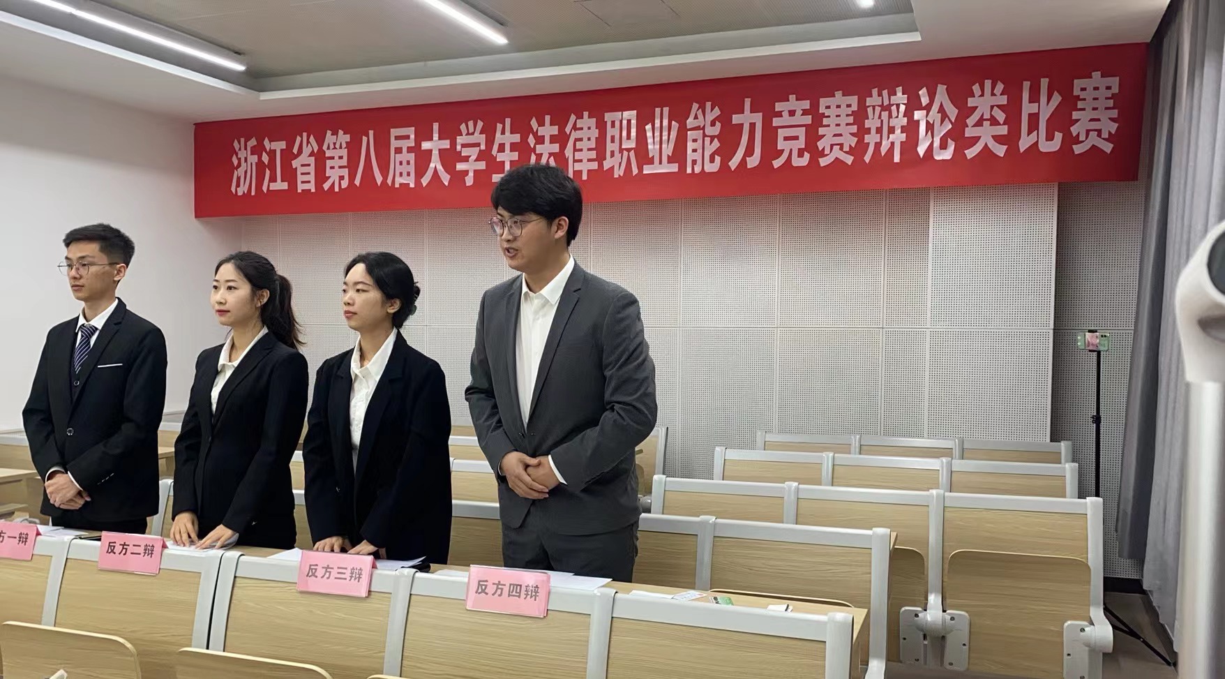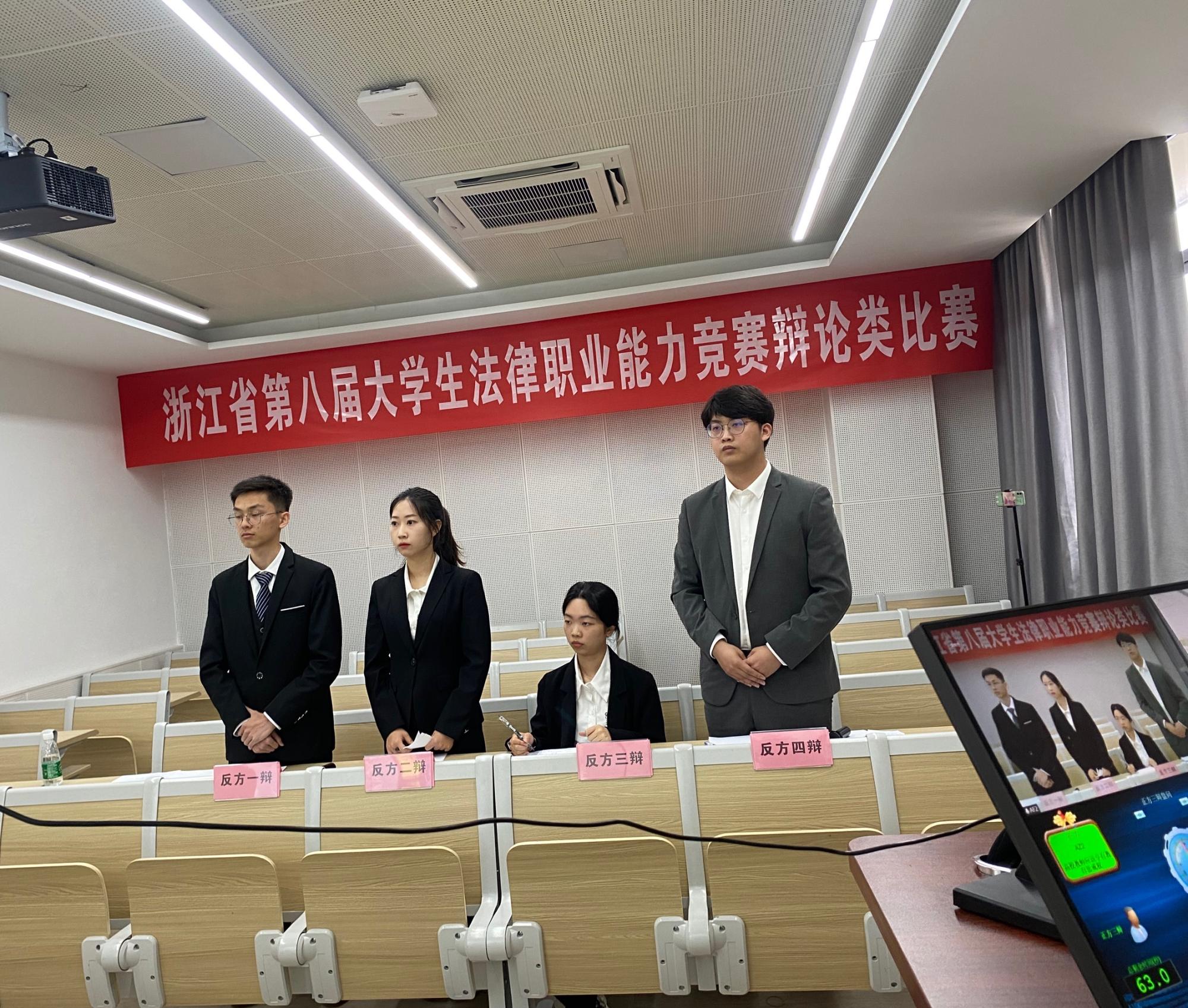 为期两天的比赛中,辩手们围绕“公众人物的隐私权是否应该受到限制”“虐待动物应当不应当立法追责”“高校教师是否应当享有教育惩戒权”等辩题展开激烈的辩论。据悉,浙江省大学生法律职业能力竞赛是国内首创且为目前国内唯一常规举行的综合类法律专业赛事,也是浙江省专业性最强、赛事规模最大、最具权威的法科大学生科技竞赛,旨在培养具有创新精神和实践能力的卓越法律人才,促进浙江省法科大学生综合素质的全面提升,提高人才培养质量,活跃校园气氛、开拓学生思想,展现大学生朝气蓬勃、积极向上的精神风貌,促进法学学科教学改革,在整体上推动浙江省法学教育的发展。