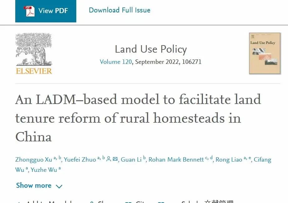 公共管理系徐忠国副教授为第一作者,卓跃飞副研究员为通讯作者,在国际高水平期刊“Land Use Policy”上发表研究论文“An LADM–based model to facilitate land tenure reform of rural homesteads in China”,论文以404吧