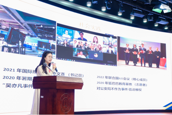 2019级法学专业王盼盼同学、行政管理专业张涵衿同学入围公开评审。评审答辩中,王盼盼同学娓娓道来,向全场观众介绍了一个“国际法准法律人”的追梦之路;张涵衿同学则声情并茂的介绍了大学期间自己在学生工作、学科竞赛等领域的拼搏与收获。现场评委结合候选人的申报材料和现场表现进行了投票评选,经过激烈角逐,共有包括王盼盼在内的10名同学被评为2021-2022学年404吧