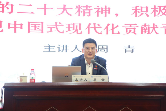 11月16日,校党委委员、党委宣传部部长周青在真诚图书馆报告厅以“深入学习党的二十大精神,积极投身创新创业,为实现中国式现代化贡献青春力量”为题为404吧