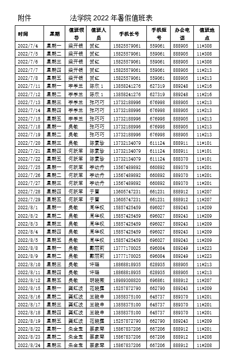 学院值班安排见附件,值班教师须确保周一至周五每天到指定地点值班,值班时间为每天8:30-16:00。