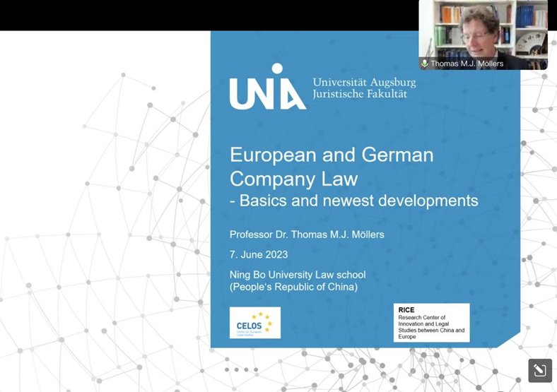 民法、经济法、欧盟法、国际私法、比较法和法学方法论教席教授,德国奥格斯堡大学欧洲法律研究中心主任,德国奥格斯堡大学中欧创新与法律研究中心主任Thomas M. J. Möllers 托马斯·默勒斯教授主讲,以“欧洲和德国公司法”为主题,开展了一场线上学术讲座。讲座由404吧